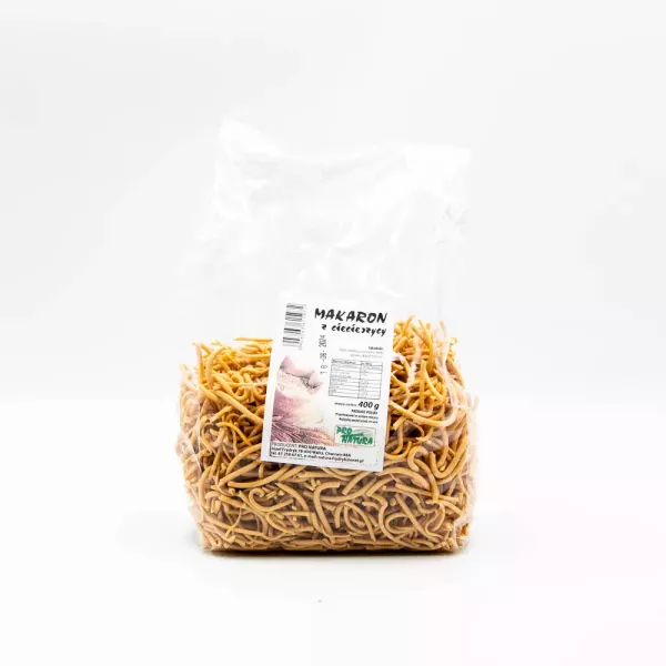 Lubiane warzywo strączkowe, które cenione jest nie tylko za swój smak, ale również różnorodność wykorzystania, stało się również podstawą do stworzenia produktu, jakim jest makaron z ciecierzycy w kształcie nitki! Będzie on wspaniałym dopełnieniem dań z patelni, niezależnie, czy zdecydujemy się na wariant z gęstym pomidorowym sosem, czy może ze smażonymi na oleju warzywami. Warzywo to jest bogate w białko oraz inne elementy odżywcze - dzięki czemu produkty z niego są o wiele bardziej pożywne niż klasyczne rozwiązania z mąki i (ewentualnie) jajek. Możecie być pewni, że delikatny smakgotowego produktu nie zakłóci ani nie przytłoczy Waszych ulubionych dań - wręcz przeciwnie, podkreśli je oraz doda im nowego uroku.