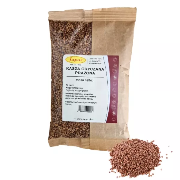 Kasza gryczana prażona zachwyca intensywnym, orzechowym aromatem i bogactwem składników odżywczych. Idealna do tradycyjnych polskich dań, farszów i sałatek.