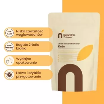 Jest to produkt o niskiej zawartości węglowodanów i dużej ilości białka, którego zawartość to ponad 50%. Prócz tego gotowa mieszanka chlebowa keto do wypieku domowego pieczywa zawiera też tłuszcz oraz porcję błonnika, czyli te same składniki, co w tradycyjnym pieczywie.