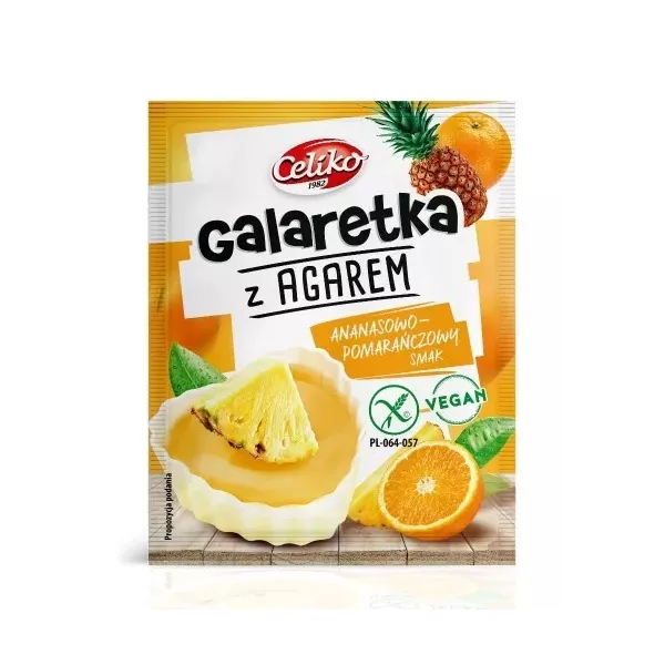 Galaretka o smaku ananasowym. Może zawierać gluten (pszenica), jaja oraz mleko i produkty ...