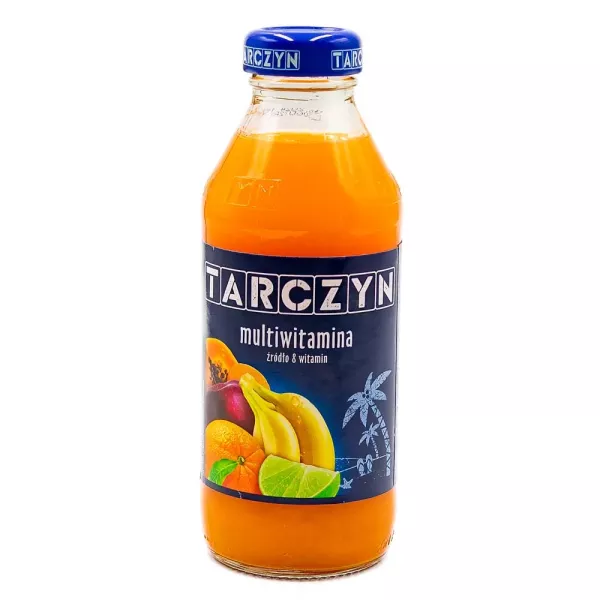 Sok wieloowocowo-marchwiowy 100 % częściowo z zagęszczonych soków z witaminami.