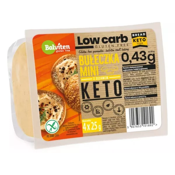 KETO Mini bułeczki z sezamem 4x25g. Produkt bezglutenowy.