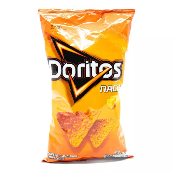 Chipsy kukurydziane o smaku serowym. Produkt może zawierać soję i inne zboża zawierające gluten.