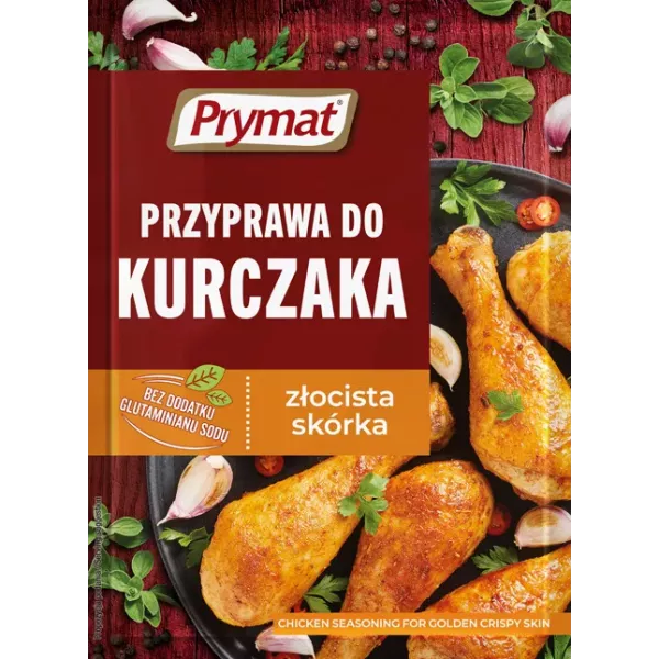 Przyprawa do kurczaka złocista skórka Prymat nadaje potrawom wyśmienity smak i aromat. W skład mieszanki Prymat wchodzą różnorodne przyprawy ziołowe i korzenne.