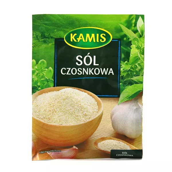 Sól jodowa (zawartość jodanu potasu 39 = 13mg/kg soli), czosnek - 30%.