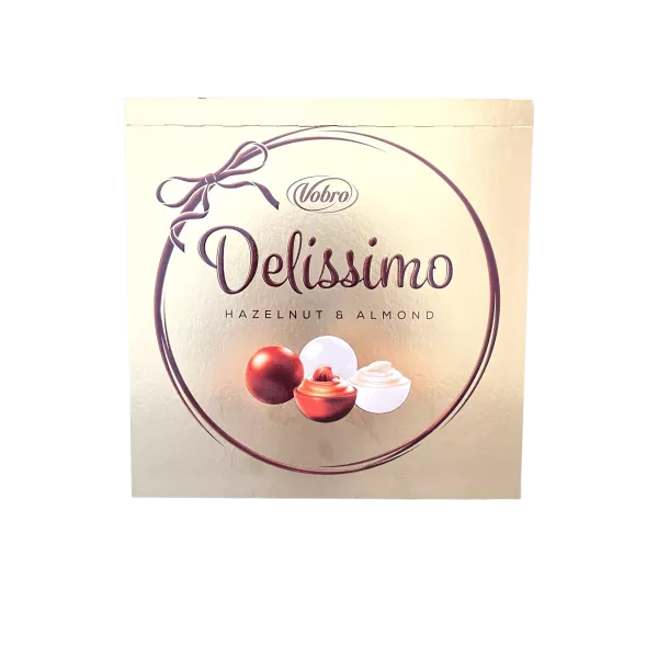 Praliny z mlecznej czekolady (38%), nadziewane kremem orzechowym i orzechem laskowym (6,5%) oraz praliny z białej czekolady (38%) nadziewane kremem o smaku kokosowym i migdałem (7%).