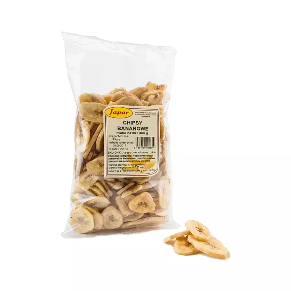Chipsy bananowe to chrupiąca i słodka przekąska, idealna do podjadania w ciągu dnia. Powstają z dojrzałych bananów krojonych w cienkie plasterki i delikatnie suszonych i smażonych.