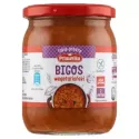 kapusta biała 36 %, kapusta kiszona 24 %, woda, cebula, pieczarka świeża 9 %, koncentrat pomidorowy, teksturowane białko SOJOWE, olej rzepakowy, bulion wegetariański [sól, suszone warzywa (pasternak, marchew, SELER korzeń, pietruszka korzeń, por, SELER liść, pietruszka nać), olej rzepakowy, kurkuma, lubczyk liść], sól morska, śliwka suszona 0,4 % (śliwka, mąka ryżowa), grzyby suszone 0,36 % (borowik suszony, podgrzybek suszony), przyprawy (zawierają GORCZYCĘ).