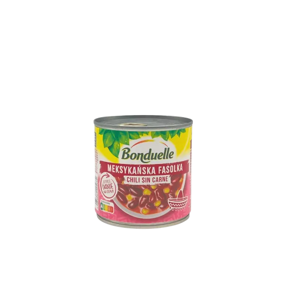 woda, fasola 28%, kukurydza cukrowa 14%, pasta pomidorowa 6,4%, cukier, sól, suszona cebula, skrobia kukurydziana, czosnek w proszku, papryka mielona, ekstrakt z papryki, pieprz biały, rozmaryn, oregano, tymianek, bazylia, liście laurowe.
