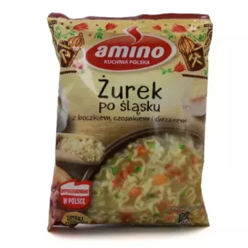 Zupka błyskawiczna żurek po śląsku z boczkiem, czosnkiem i chrzanem. Może zawierać jaja, gorczycę, inne zboż zawierające gluten i soję.